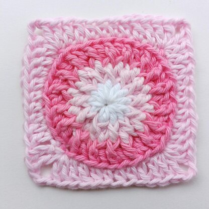 The Pretty in Pink Textured Granny Square is a quick crochet project featuring a textured circle at the center.