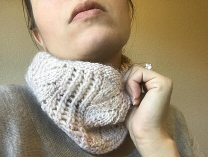 This cowl is a quick knit and perfect for that luxury skein of yarn you just want to pet all day long. It can be worn long and lovely or wrapped doubled to hug your neck.
