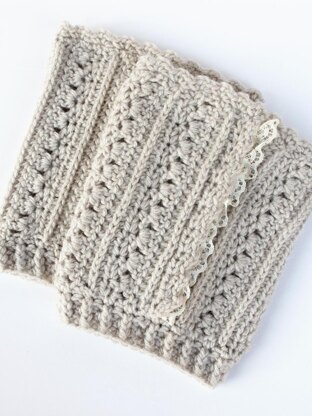 This beautiful boot cuff crochet pattern embodies the ultra feminine look perfectly, with loads of texture, and (optional) lace trim. These stylish cuffs can be made in an evening or two, and are sure to dress up your winter wardrobe. Search for the Primrose and Proper Slouch Hat pattern to make it a set!