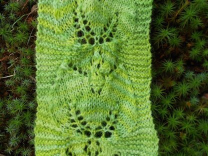 A delicate scarf that is light and airy. It features a large, double leaf motif that reminds me of a pretty Primula leaf and flower. This lace pattern can be made in any weight yarn, so it can either be delicate or sturdier, it is up to you. The tonal wool yarn this is knitted in, is of a springtime nature, and lends itself to that time of year. Or, for a fall look, try shades of pretty reds, browns or burnt oranges. Even a pretty red for Christmas would be lovely. The sky is the limit! The pattern is charted and written out for ease in knitting. Enjoy!
