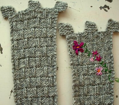 - Scarf is knit flat, straight or circular needles will work. Embroidery needle and thread required for optional flowers.