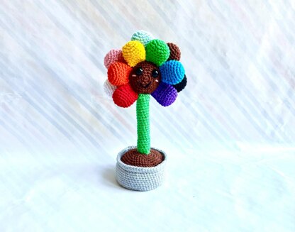 Crochet Progress Pride Sunflower Pattern Inspired by the progress pride flag, add this little sunflower to your collection. It’s a fast make for a beginner. The final product measures 19cm tall (from bottom of pot to top petal) and 10cm wide at its widest point. It will look super cute sitting on a bookshelf, or is a great gift for any LGBTQIA occasion. Please note, this is a PATTERN ONLY and not a finished product.