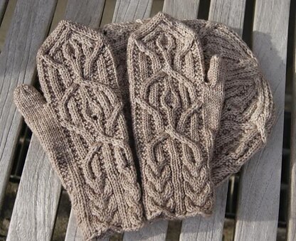 **General notes:**The Proudy’s s are worked in the round on Crazy Trios or double pointed needles. The ”anatomical ” thumb gusset and cable pattern combination are specific designed for a perfect fit.