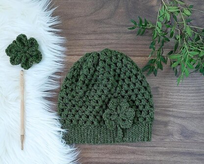 Keep warm and cosy at your St. Patrick’s Day Parade this year with this cute puff stitch hat and crochet shamrock! The shamrock is detachable so you can wear your hat on other days too :-)