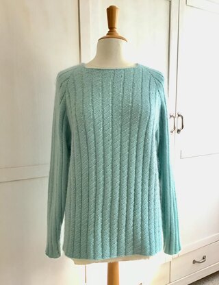 Der Pullover Himmelsleiter wird von oben nach unten gestrickt. Vorder- und Rückenteil ziert ein Rippenmuster mit diagonalen Streben, an den Ärmeln verläuft das Rippenmuster einfach. Zweifädig aus wunderbar weichem Mohairgarn mit einem Merino/Baumwollgarn gearbeitet, ergibt diese Mischung eine herrlich, kuschelige Wirkung und der Pullover hüllt uns in eine warme Wolke. Ein absolutes Winter - Must Have!