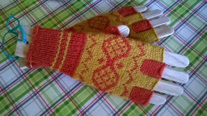 - Yarn is from Kate Davies and it is a lovely smooth wool which is nice and the gloves quickly were knitted up with this wool.