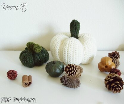 The pattern contains detailed instructions and photos to help you create three different sizes of pumpkins, leaves and stems.