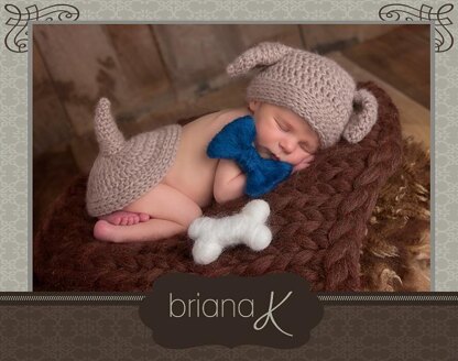 Ruff Ruff!!! Adorable little newborn puppy dog outfit for photography sessions. This unique looks is easy to use during a newborn session and comes with 2 options for the bone and bow tie (bow). One option is a crochet version and the other option is felted! A picture tutorial is included for the felted option.