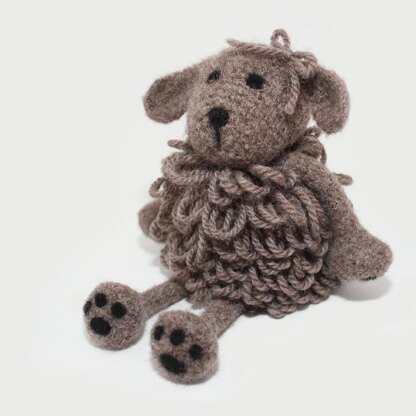 The finished puppy measures approximately 12.7 cm (5”) tall excluding the legs. Please note that size is approximate and will be affected by the gauge and the brand of wool.