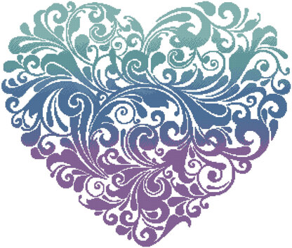 This counted cross stitch pattern of a Stylized Purple Blue Green Heart was created from artwork by On Focus - Vector Stock. Only full cross stitches are used in this pattern. It is a black and white symbol pattern. 6 DMC Colours are used.