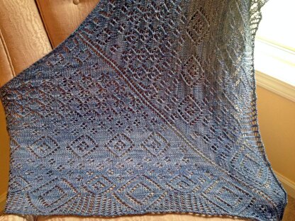 Knitted from the top, starting with a short tab, then knitted down. Includes charts and written instructions, helpful for those beginning lacework.