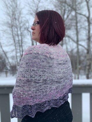 This shawl uses five 50g skeins of fingering weight yarn but could be totally modified for 1 color or 10! This is a great Netflix knit that goes between sections of Garter and a fun seed stitchy type of section with some slipped stitched too.