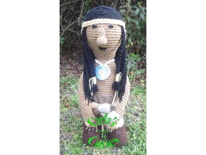 This Native American doll is approx. 15 inches tall. He wears Cornmeal pants and Coffee moccasins. Warm Brown was used for the flesh color, and Black for the hair. The medallion is a verigated color. Puyena sports a Cornm
