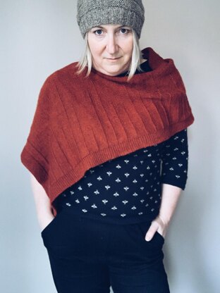 *'Quair’ is an old Scottish word for ‘book’ and this poncho is all about the written word. Youare the author and you ‘write’ the poncho any way you like. Garter ridge lines travel from the bottom of the poncho, ending at various points as if they are lines of poetry or prose. You decide where the lines end and how this part of the poncho looks, writing your own story in stitches.