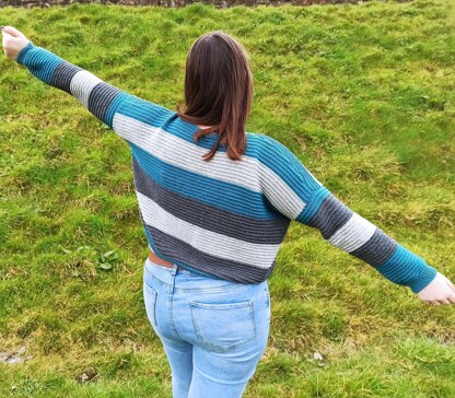 ConstrucciónThe sweater is worked in the round with circular needles (it can also be worked flat with straight needles) from the bottom up to the armholes. Then we separate back and front and we will continue to work by rows. The shape of the neck and shoulders is done by German short rows. Finally, stitches are picked up to knit the sleeves and also for the neck.