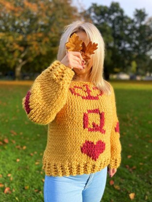 Queen of Hearts Jumper is easy to knit but also interesting, as you get a chance to use basic intarsia technique which is fun to play with. To make the this jumper, you will knit back, sleeves, front panel separately, then you will seam them together.