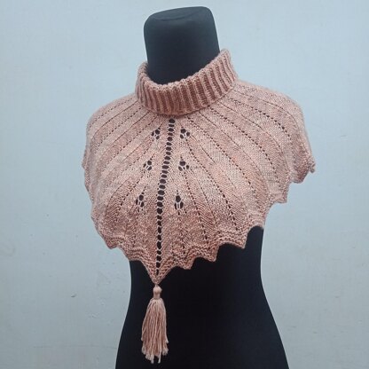 PATTERN NOTES Queenara cowl is a ‘fit to neck’ cowl, which is worked top down to the bind off edge. The pattern is adjustable in size and can be worked in lace to sport weight yarn with the corresponding needle size. However the yarn usage and the finished measurements will be different from the sample. Pattern features a rolled brioche ribbed collar with a victorian inspired yoke featuring a delicate lace pattern in the front. You can also make an optional tassel for the front of the design as shown in the sample photo.