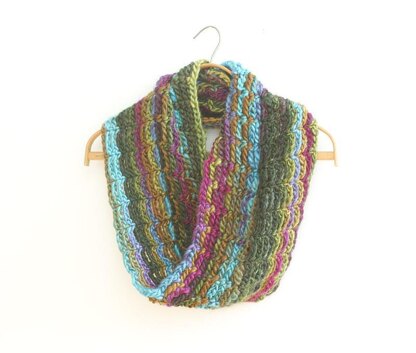 Make an infinity scarf in an evening - this is an easy pattern that works up very quickly using bulky yarn. It is worked in a circle with no seams.