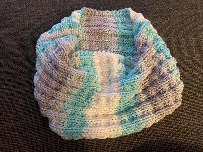 This Easy Neck Cowl consists of an easy 4 row repeat knitting pattern. It only contains knit and purl stitches, making it a great pattern for the motivated beginner knitter.