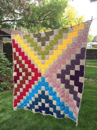 Get the look of a fabric quilt with this easy to remember granny square crochet pattern! Thirteen colors coordinate beautifully together to make this large 50” square blanket. Beautiful on a bed, couch or recliner. Easy care machine wash, tumble dry. A simple 2 round single crochet border keeps the design clean and lets the colors shine! You can certainly used worsted weight (4) yarn from your local store that sells yarn. Would be just as beautiful in Christmas colors, all different shades of pinks or blue.
