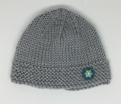 An easy, basic knit baby hat with garter stitch brim. Made on straight needles.