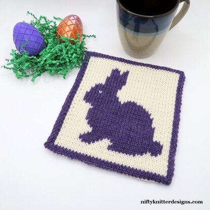 Decorate your kitchen with this cute rabbit potholder! It makes a great quick gift or Easter decoration. Double knit, the potholder is reversible, with opposite colors on the reverse side. Use color changing yarn for interesting color combinations or solid colored yarn for a more classic look.