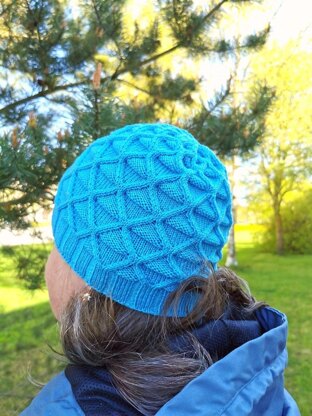 Finished measurements: 20cm / 7.87” height from base of ribbing to top center of crown before blocking and 22cm / 8.66” height from base of ribbing to top center of crown after blocking. Measurements are taken from relaxed fabric.