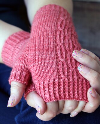 A Scots word for chains, Rackle features dainty, twisted stitch cables that forming a series of chains on the back of the hand. This fingerless mitts pattern is a really quick and fun make – perfect for yourself or a gift for anyone. For the perfect fit, knit a size which gives you at least 1 cm (0.5”) of negative ease. Change things up be swapping the left and right glove, and watch the cable pattern wrap around the side of your hand!