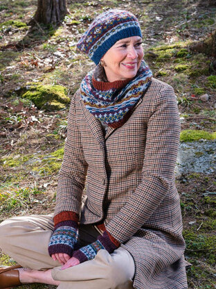 Colorwork fans will love this beret, cowl, and mitts set! Classic geometric motifs decorate these seamless pieces, and the interplay of five shades gives them a rich depth and timeless style.