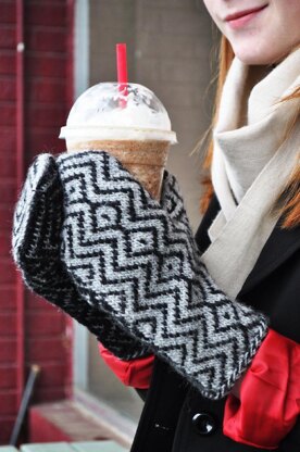 Radio Frequency MittensYarn Lanaloft Sports Weight from Brown Sheep Co. Color A: LL33 Manor Gray Color B: LL03 Black Bear One ball of each color.