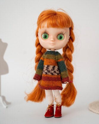 This 4 page pattern includes instructions with of 13 photos references to instruct you on how to knitted Dress for Blythe doll step by step.