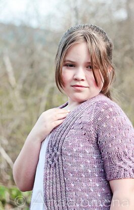 Rain Song is a very elegant, and a very girly design that flows and changes. It is worked with fingering weight yarn to a DK gauge. This design is ideal for wool or cotton, thus making it a beautiful layering piece for all year round. This cardigan is worked as a top down raglan, features very simple and very effective lace, and a touch of Celtic cables as finishing touches.