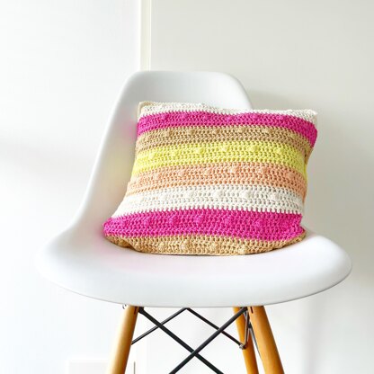 With this fun and easy to follow crochet pattern you can make this lovely Bobble Stitch Pillow in just one afternoon. Just follow the instructions and your pillow will be ready in just a few hours. For this pillow I used a crochet hook size 5mm, an inner pillow of 45 x 45cm and cotton for a crochet hook size 5mm. A full description of materials used is in the pattern. If you want to use a different pillow size, just follow the directions in the pattern. An adjustment in the size can be made very easily. This pattern is available in US terms only. I made this yarn with Egyptian Cotton, but Paintbox Yarns Cotton Aran is a lovely alternative yarn with the same bright colors.
