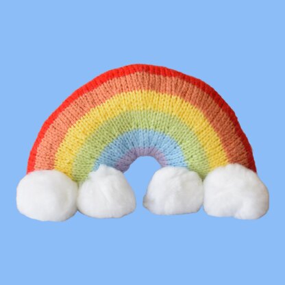 Knit a Rainbow Decoration to hang on your wall or in a window to cheer up passers by, with pompoms or cotton wool balls to make the fluffy clouds. Designed by Amanda Berry @fluffandfuzz, the rainbow is knitted in the round using acrylic DK yarns and circular needles for Magic Loop. For confident beginners and above, other techniques used include casting on and off, knit, k2tog decreases, and a little seaming to finish.