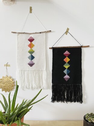 A colourful and bohemian crocheted wall hanging. This project can be made with any yarn, in any size - a great stash buster.