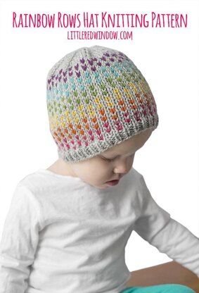 The cute Rainbow Dtos Hat Knitting Pattern has offset rows of rainbow dots on a pretty heather gray background. You can choose any set of rainbow colors you like on any background, it would be adorable on a white baby hat too! What a fun and colorful baby hat knitting pattern!