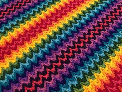 Rainbow ridges cascade across the blanket, creating a colorful accessory for any room. Make a rainbow baby blanket, a striped blanket for your living room, or a blanket to show of a more focused color palate.