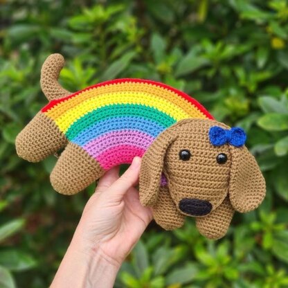 Introducing the Rainbow Smooch Pooch! Guaranteed to make you smile - and combining two of my favourite things - rainbows and sausage dogs. Perfect as a children's toy, as a pillow for the couch or bed, or for giving a squeeze when you need some cheering up. Make your own today to spread the joy.