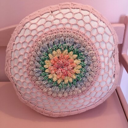 My Sprinkles Pillow is my first ice cream shop inspired pillow. I am currently designing pillows that are made with ice cream colors. The first one is rainbow sprinkles. As you can see, my rainbow includes dark pink instead of red! I used MillaMia yarn, but any sport weight yarn would work. You will need three balls of the light pink, two balls of the cream, and one ball of each of the rainbow colors. The popcorn stitch center is created by crocheting with two balls of yarn at once- the cream and another color. A 5.00 mm hook is used for the center. There are step by step pictures to explain this technique! The outside is crocheted with light pink yarn (only one strand), so a 3.00 mm hook is used. The pillow is joined together with the cream yarn, and six buttons allow the pillow to be taken on and off of the pillow insert. If you like reading charts, there are charts included for the front and back side. There are also pictures throughout the pattern to demonstrate the steps.