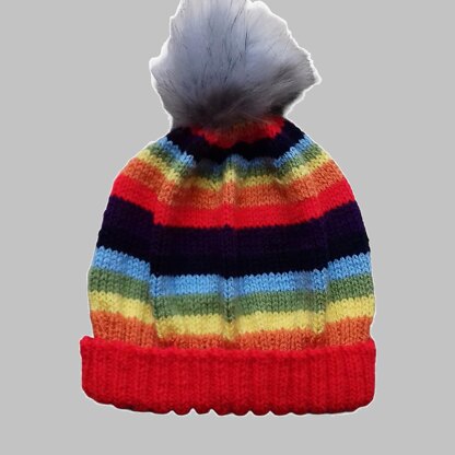 This hand knit PATTERN is for a simple beanie hat in rainbow stripes