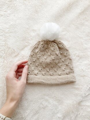Simple knit hat pattern for baby. Features a folded brim and a faux bobble stitch that is easy for beginners. Worked in a soft cozy yarn just perfect for babies :)