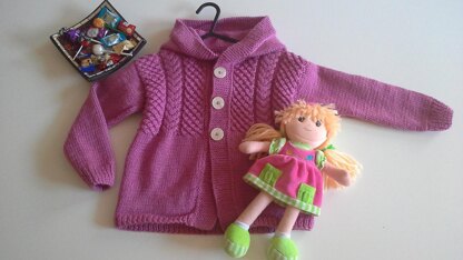 Raspberry Hoodie is made for 4 yrs old girl who loves bright colours. It is made with Baby Merino Deluxe yarn which is soft and pretty and doesn't make the skin itchy.