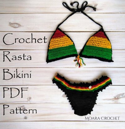 One Love Rasta Crochet Bikini Pattern with HIDDEN ELASTIC! Let go of the stresses of life & relax on the beach in my ‘One Love’ Reggae bikini with added bead detail & bikini bottoms designed in the Brazilian style. Pattern uses 4 ply yarn to make your bikini light weight & cool.