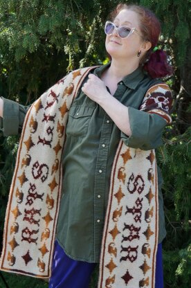 This is a scarf-length palindrome embellished with graphics that represent the subject matter; to wit: rats and stars. It’s a whimsical piece, perfect for your favorite English-language enthusiast or rodent fan.