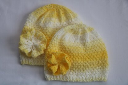 Pattern is written in English.it is easy to follow,it includes row-by-row instructions. The hat is hand-knitted with self-striping yarn, which has a beautiful combination of yellow colors. it is soft & light. Comfortable. Decorated with a flower (knitted). Lovely for spring & summer days. Sizes.Preemie. 0-3 / 6 - 9 / 12 months + Materials.1 skein of Lion brand yarn Ice Cream,Light # 3, or any yarn weight # 3; Straight or Circular knitting needles size US 6 - 4 mm; Smaller size needles US 5 - 3.75 mm for lower band of a hat. Yarn needle. See Matching "Ray of sunshine Baby Blanket with Ruffle" pattern at my page. Establish stitch is pretty & easy to make.