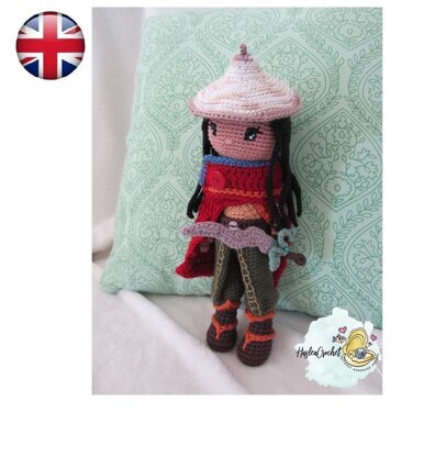 - English Pattern of Raya doll in crochet (size about 9,44 inch =>24 cm) : indications, photos, diagram and tips - Pattern of her sword as free gift. - The hat, vest and cape are removable.