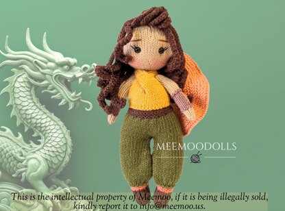 🧶 Copyright © Meemoo ALL RIGHTS RESERVED Protected by U.S.A copyright laws worldwide. This knitting pattern is only available from Meemoodolls online. It is for individual use only. The patterns, images, and videos in this book are copyrighted. All rights are owned by Meemoo and cannot be reproduced, translated, used for derivative works, published in YouTube, or published in any form or by any means without prior written permission from Meemoo. Do not copy, share, resell, teach or forward Meemoo® patterns. Commercial use is not allowed. To teach this pattern, each student needs to have their own paid pattern.