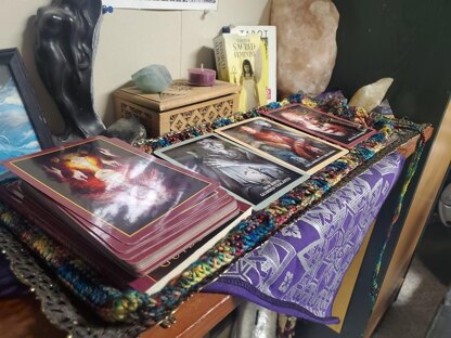 This pouch is made to measure to fit your very own tarot deck. Its designed to keep your crystals and deck close by and you can use it for a 3 card spread.