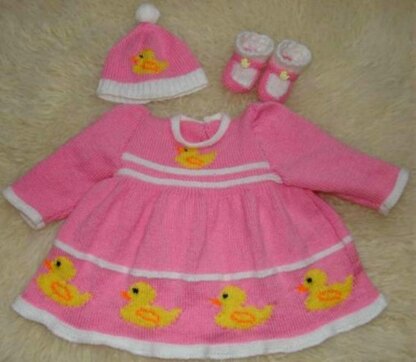 Duck Dress,Hat & Booties Knitting Pattern - Reborn /0-3/6/9/ Baby.