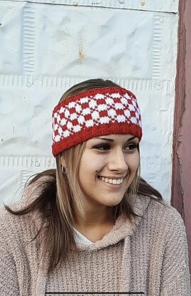 Red and White checkerboard style design headband. This is a beginner knitting pattern.Enjoy expressing yourself through knitting one of our fun headband designs with various colour choices to make it your own. These patterns are based on Fair Isle / Stranded Colour knitting styles. All headbands are knit on circular needles which make them seamless to give you a professional looking result. Headbands are functional ear warmers for those cold days while making a fashion statement. Enjoy knitting some for yourself. They also make great gifts which I’m sure will impress! This pattern comes with colour coded knitting chart for an easy follow along with additional instructions and video links for beginners. Pattern # 114 Skill Level: 1 Skill level are based on a 1 – 5 level (1 for beginners right up to 5 for advanced). Size: Adult: head circumference of 20 to 23” (50-60cm) Width: 3.75” (9cm)